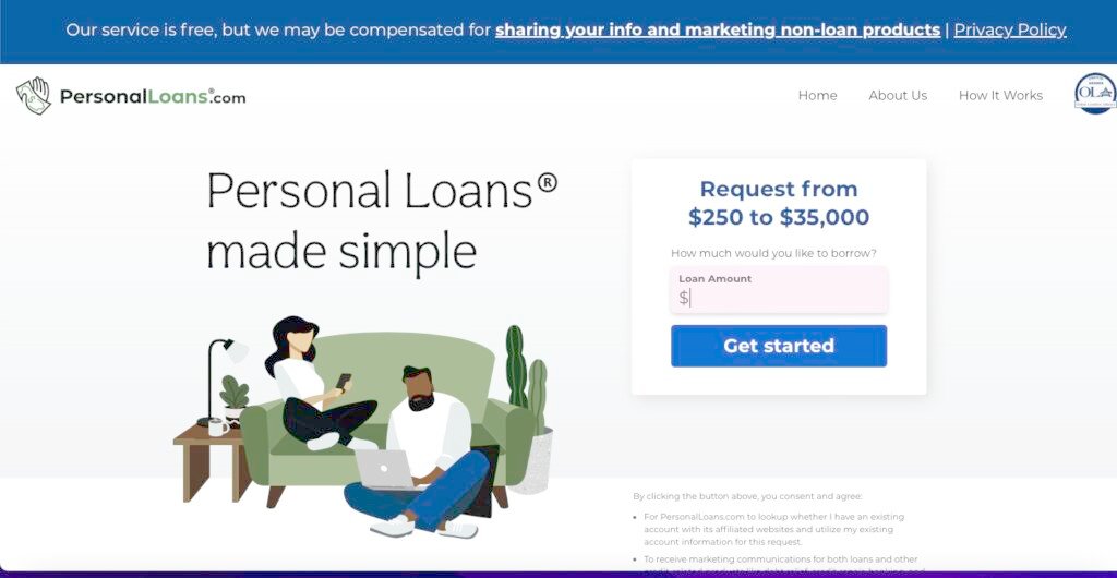 Not a Direct LenderPersonalloans.com is a loan marketplace, not a lender. This means you’ll need to work with third-party lenders, and their terms and conditions will apply.